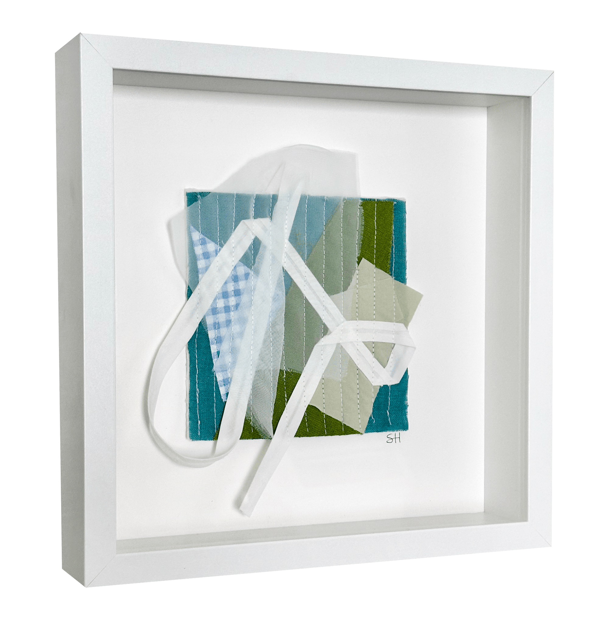 The piece was framed by me in a white shadow box with regular acrylic glazing and has been stitch-mounted to archival matboard. The piece ships with hanging hardware for your wall and has a wire hanger on the back.