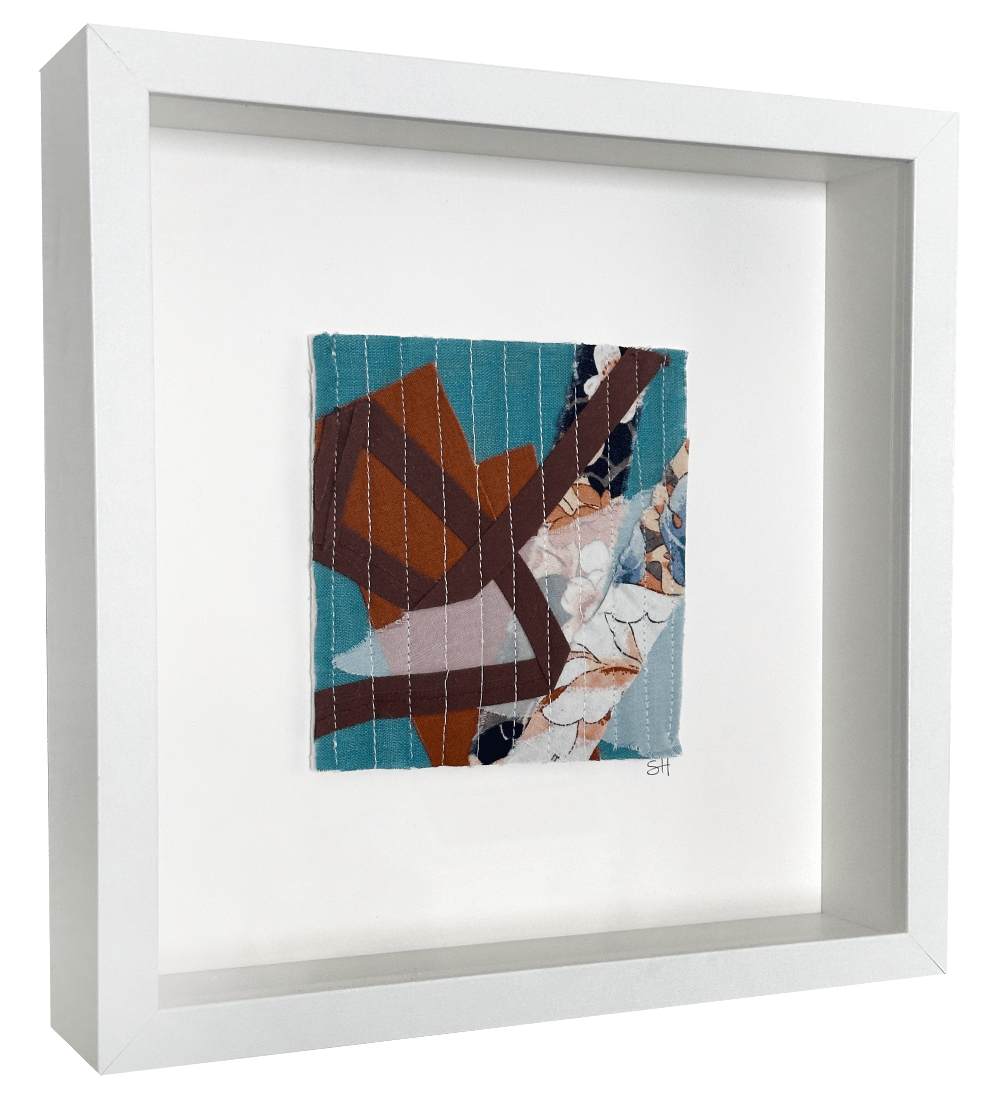 The piece was framed by me in a white shadow box with regular acrylic glazing and has been stitch-mounted to archival matboard. The piece ships with hanging hardware for your wall and has a wire hanger on the back.
